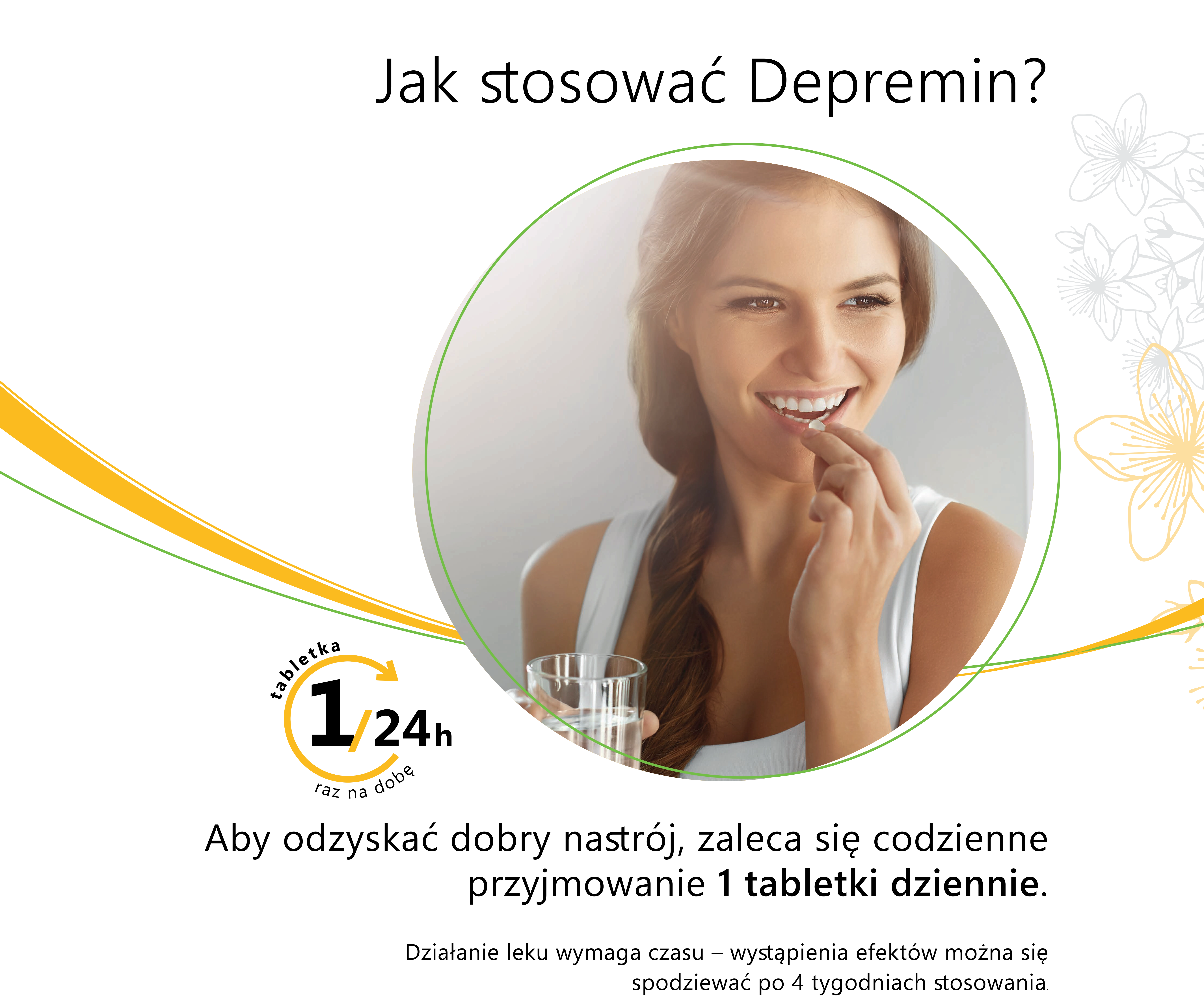 Depremin należy przyjmować doustnie, po 1 tabletce dziennie. Nie należy przekraczać maksymalnej dawki leku, co jest kluczowe dla bezpieczeństwa stosowania.