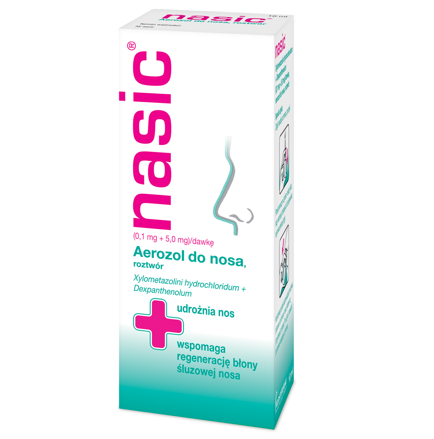 Nasic to lek w postaci aerozolu do nosa, który zawiera dwie substancje czynne: ksylometazoliny chlorowodorek i deksopantenol. Ta unikalna kombinacja składników aktywnych zapewnia podwójne działanie - udrażniające nos oraz wspomagające regenerację błony śluzowej nosa.