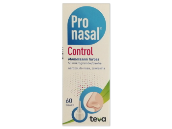 Pronasal Control to lek w formie aerozolu do nosa, zawierający mometazonu furoinian – kortykosteroid stosowany w leczeniu objawów sezonowego alergicznego zapalenia błony śluzowej nosa, znanego jako katar sienny. Lek łagodzi takie dolegliwości jak obrzęk i podrażnienie błony śluzowej nosa, kichanie, świąd, uczucie zatkanego nosa oraz nadmierne wydzielanie wydzieliny. Pronasal Control jest przeznaczony dla dorosłych i działa poprzez zmniejszenie stanu zapalnego wywołanego alergią na pyłki roślin i zarodniki pleśni. Preparat zawiera mometazonu furoinian jako substancję czynną oraz inne składniki pomocnicze, w tym benzalkoniowy chlorek, który może powodować miejscowe podrażnienie przy długotrwałym stosowaniu.