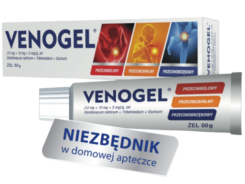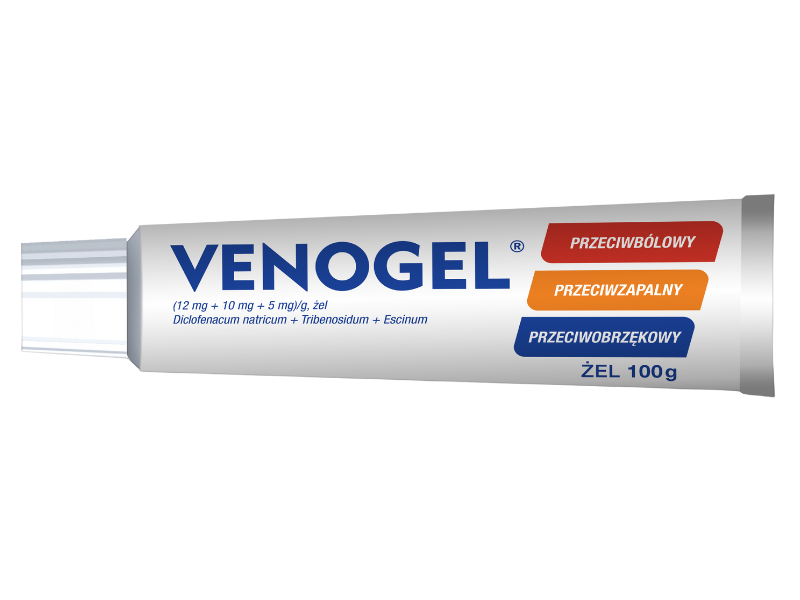 Venogel to lek w formie żelu stosowany miejscowo na skórę, zawierający diklofenak sodowy, trybenozyd i escynę. Preparat wykazuje działanie przeciwbólowe, przeciwzapalne oraz przeciwobrzękowe. Wskazany jest w leczeniu stanów zapalnych żył kończyn dolnych, obrzęków pooperacyjnych i pourazowych, zespołów bólowych kręgosłupa, a także pourazowego bólu mięśni i stawów oraz łagodnych postaci zapalenia stawów. Substancje aktywne wnikają w głąb tkanek, pomagając zmniejszyć ból, obrzęk i stan zapalny, co wspiera poprawę funkcji ruchowych.
