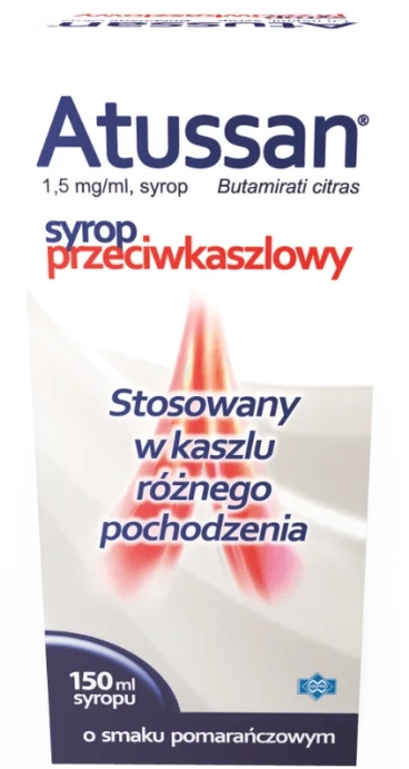 Atussan to lek na suchy, męczący kaszel – zawiera butamirat, który działa przeciwkaszlowo oraz dodatkowo rozszerza oskrzela, dzięki czemu może ułatwiać oddychanie. Pomaga zwłaszcza wtedy, gdy kaszel utrudnia sen i codzienne funkcjonowanie. Może być stosowany u osób dorosłych i dzieci od 3 lat. Atussan to produkt bez cukru (nie zawiera sacharozy).