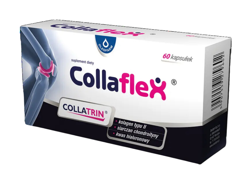 - Collaflex – hydrolizat kolagenu typu II pochodzenia drobiowego, siarczan chondroityny, kwas hialuronowy, witamina C (kapsułki);