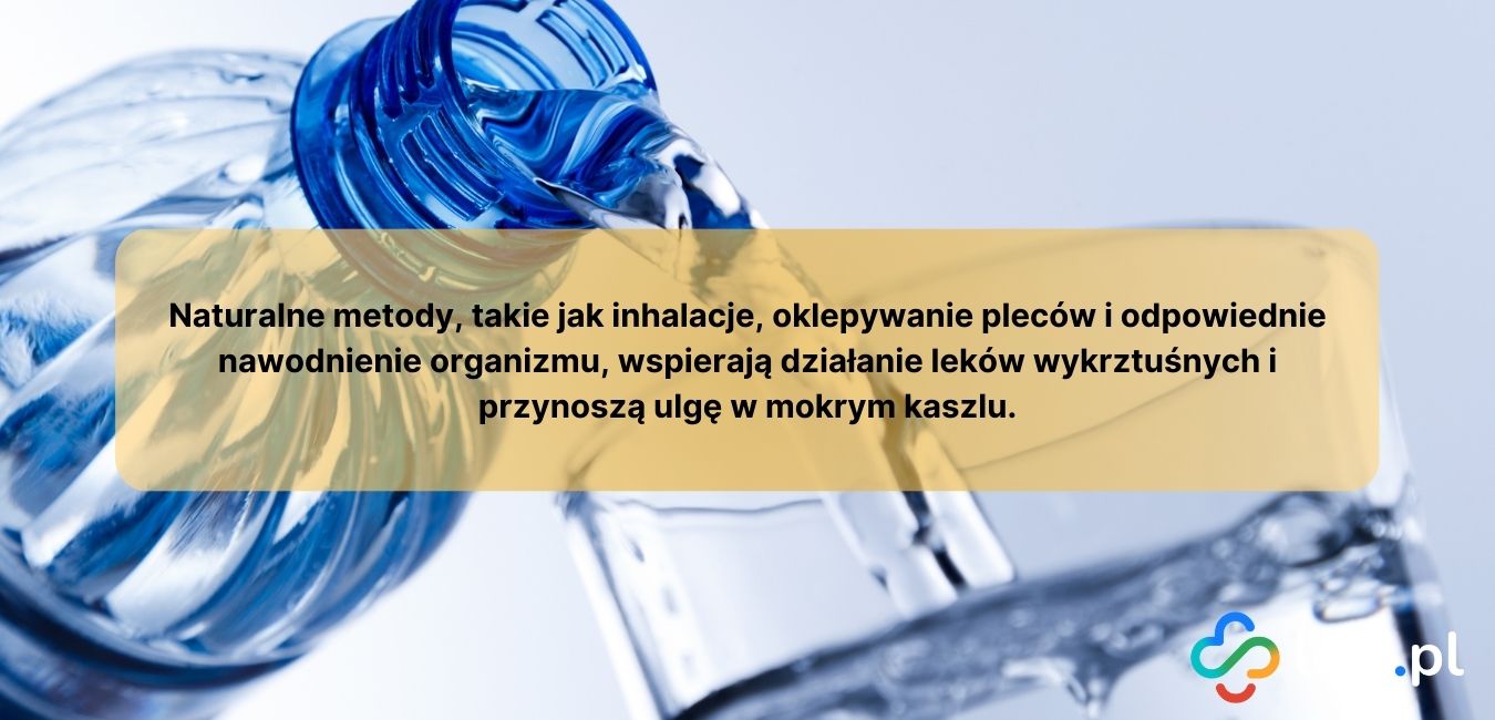 W łagodzeniu mokrego kaszlu dobrze sprawdzają się inhalacje, ponieważ rozrzedzają one gęstą wydzielinę, co ułatwia jej odkrztuszanie. Inną metodą pozwalającą usunąć zalegającą flegmę jest nacieranie klatki piersiowej olejkami eterycznymi (np. mentolowym, terpentynowym) lub kamforą. Razem z wyżej wymienionymi czynnościami wskazane jest także oklepywanie pleców. Oklepywanie należy wykonywać energicznymi ruchami z dołu do góry pleców. Zalegająca wydzielina będzie wówczas łatwiej odrywać się i wydostawać z dróg oddechowych. Równie ważnym aspektem jest zadbanie o odpowiednie nawodnienie organizmu – przyjmowanie powyżej 2,5 litra płynów dziennie spowoduje rozrzedzenie zalegającej wydzieliny. Zmniejszeniu lepkości śluzu sprzyja także wyższa temperatura ciała, dlatego warto wygrzać się pod kołdrą lub kocem.