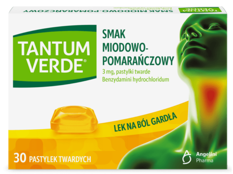 Preparaty: Tantum verde pastylki do ssania i aerozol, Hascosept aerozol, Uniben aerozol, Inaldin gardło aerozol.