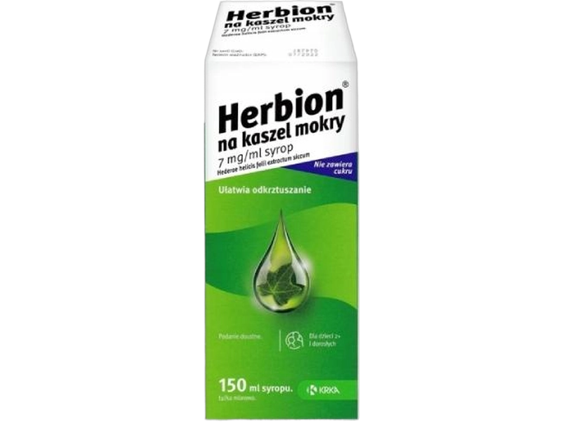 Herbion na kaszel mokry zawiera suchy wyciąg z liści bluszczu (Hedera helix L.) i jest stosowany jako środek wykrztuśny w przypadku kaszlu produktywnego (mokrego)[1]. Jednakże, jego stosowanie u kobiet w ciąży i karmiących piersią nie jest zalecane ze względu na brak wystarczających danych dotyczących bezpieczeństwa w tych grupach pacjentek[2].