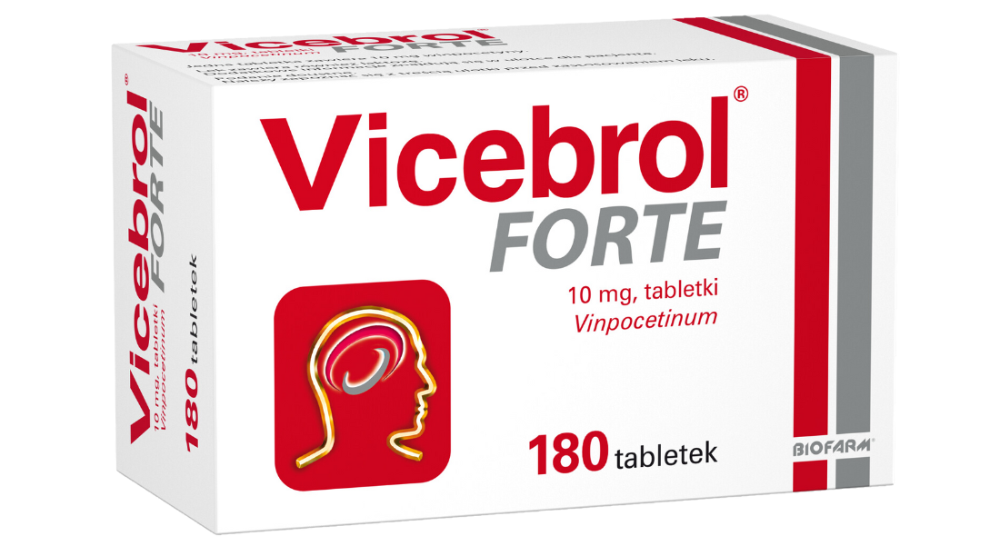 Vicebrol forte jest lekiem wydawanym na receptę zawierającym w składzie winpocetynę. Winpocetyna stosowana jest w leczeniu chorób lub łagodzeniu objawów związanych z zaburzeniami krążenia krwi w mózgu. Wskazaniem do stosowania leku jest łagodzenie objawów przewlekłych zaburzeń krążenia mózgowego, występujących w następstwie udaru, łagodzenie psychicznych i neurologicznych objawów związanych z zaburzeniami krążenia mózgowego w przebiegu miażdżycy tętnic mózgowych oraz leczenie wspomagające zaburzeń wzroku i słuchu pochodzenia naczyniowego.
