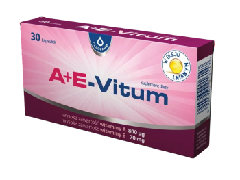 A+E-Vitum to suplement diety w postaci miękkich kapsułek zawierających wysokie dawki witaminy A i E rozpuszczone w oleju lnianym tłoczonym na zimno. Produkt przeznaczony jest dla osób dorosłych w celu uzupełnienia codziennej diety w te ważne witaminy.