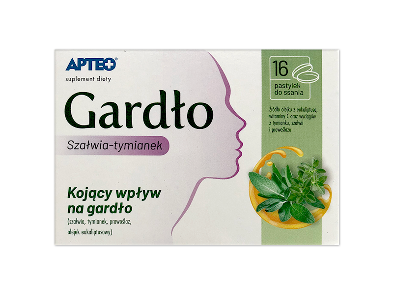 | Wskazania stosowania | Apteo Gardło szałwia-tymianek stosuj na: |