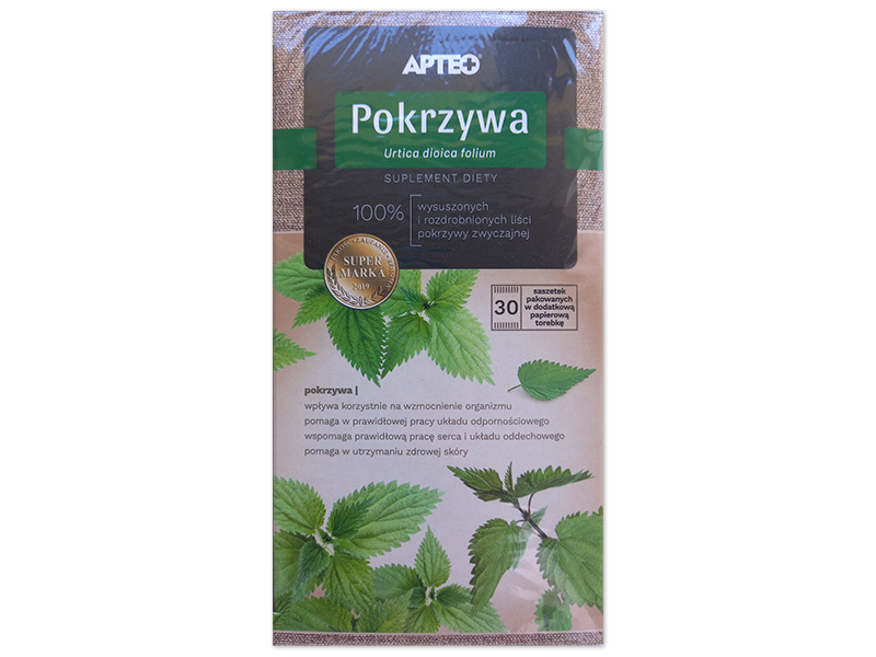 Apteo Pokrzywa to naturalny suplement diety w postaci ziół do zaparzania, który: