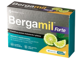 Bergamil Forte to wysokiej jakości suplement diety zawierający unikalną kombinację naturalnych składników: ekstraktu z owoców bergamoty (Citrus bergamia Risso) standaryzowanego na 32% polifenoli BPF (Bergamot-derived Polyphenolic Fraction), ekstraktu z czosnku (Allium sativum L.) standaryzowanego na zawartość allicyny oraz witaminy C. Produkt został stworzony z myślą o osobach dbających o prawidłowy poziom cholesterolu we krwi oraz zdrowie układu krążenia.
