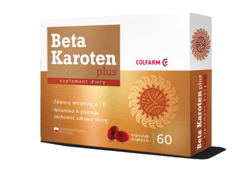 Beta Karoten Plus to suplement diety, który zawiera witaminę A i E. Z beta karotenu nasz organizm wytwarza witaminę A, która pełni wiele ważnych funkcji w organizmie. Preparat jest dostępny w formie kapsułek miękkich.