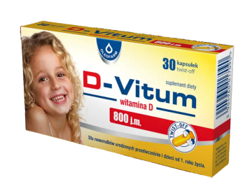 D-Vitum to suplement diety zawierający witaminę D w postaci cholekalcyferolu (witamina D3), przeznaczony dla noworodków urodzonych przedwcześnie i dzieci od 1. roku życia. Preparat występuje w formie kapsułek typu twist-off, które ułatwiają podawanie witaminy D nawet najmłodszym dzieciom.