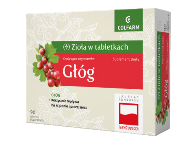 Colfarm Głóg to suplement diety w formie tabletek powlekanych, zawierający w swoim składzie wyciąg z owoców głogu (Crataegus oxyacantha). Preparat ziołowy przeznaczony jest dla osób dorosłych, które chcą wspomóc prawidłową pracę serca oraz układu krążenia.
