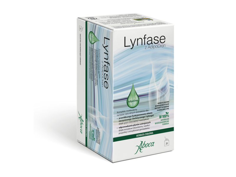 Aboca Lynfase to unikalna herbata ziołowa, która wyróżnia się wysokim stężeniem wyjątkowych substancji zawartych w kompleksie molekularnym AdipoDren. Jest to specjalna formuła oparta na bazie liofilizowanych ekstraktów z gryki zwyczajnej i ruszczyka, które wspierają prawidłowe funkcjonowanie układu naczyniowego (limfatycznego i żylnego), oraz z mniszka lekarskiego, nawłoci pospolitej i ortosyfonu groniastego, które pomagają w odprowadzaniu płynów ustrojowych.