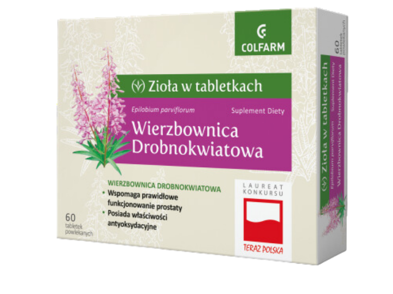 Colfarm Wierzbownica drobnokwiatowa to suplement diety zawierający wyciąg z ziela wierzbownicy drobnokwiatowej. Preparat wspiera prawidłowe funkcjonowanie prostaty i układu moczowego, pomaga utrzymać naturalny przepływ moczu oraz zmniejsza częstotliwość oddawania moczu u mężczyzn. Dodatkowo wspomaga ruchomość i elastyczność stawów, działa antyoksydacyjnie, chroniąc komórki przed uszkodzeniem oksydacyjnym, a także może wspierać dobre samopoczucie fizyczne oraz łagodzić objawy menopauzy. Produkt zawiera standaryzowany wyciąg z ziela wierzbownicy drobnokwiatowej jako składnik aktywny.