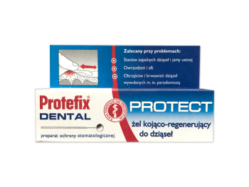 Protefix Dental to kojąco-regenerujący żel przeznaczony do pielęgnacji dziąseł i błony śluzowej jamy ustnej. Jest to wyrób medyczny opracowany przez renomowanego producenta Queisser Pharma, który łączy w sobie naturalne składniki aktywne zapewniające potrójne działanie: kojące, regenerujące i ochronne. Produkt jest szczególnie polecany dla osób noszących protezy zębowe oraz aparaty ortodontyczne, które często doświadczają podrażnień i urazów błony śluzowej.