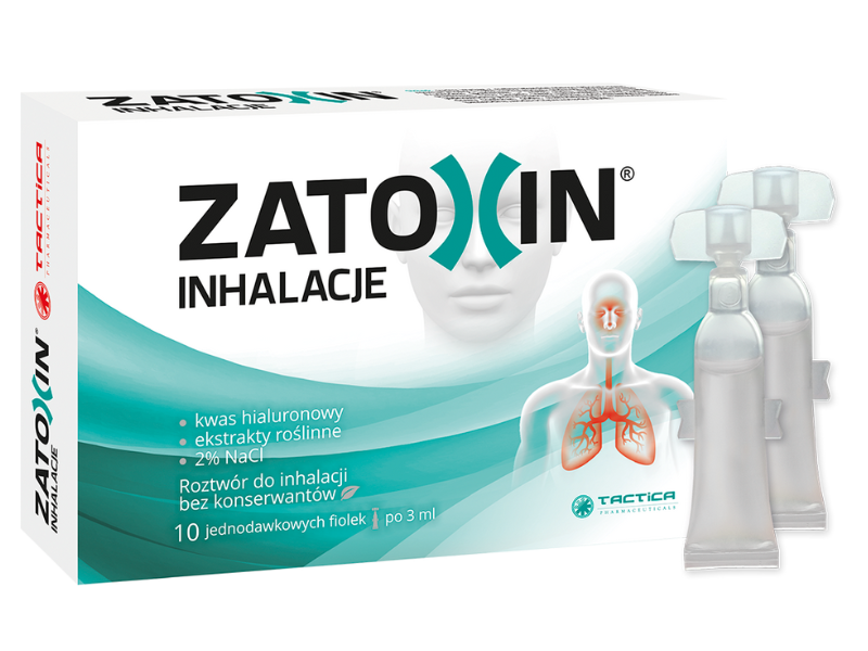 Zatoxin Inhalacje to sterylny roztwór do inhalacji do stosowania wziewnego, składający się z hipertonicznego roztworu opartego na ekstraktach ziołowych: melisy lekarskiej, pachnotki zwyczajnej i macierzanki piaskowej w połączeniu z kwasem hialuronowym. Produkt nie zawiera konserwantów i jest gotowy do użycia.